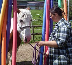 verschiedene Bodenhindernisse und Stationen aufgebaut, an denen alle Teilnehmer mit ihren Pferden arbeiten konnten. So kam keine Langeweile auf, denn es konnten auch Pferde getauscht werden. Den Abschluß bildete ein kleiner Parcours, der je nach eigenem Leistungsstand absolviert werden konnte. Hier zeigte sich, daß alle Teilnehmer in ihrer Haltung dem Pferd gegenüber sicherer und gefühlvoller geworden waren – und die Pferde bereits auf kleinste Zeichen reagierten. Ein sehr schöner Erfolg dieses Seminars, dem sicher noch weitere Kurse folgen werden.